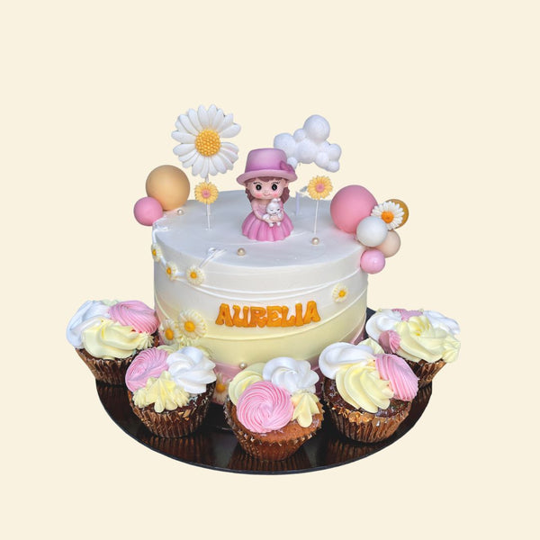 Celebrate in style with our Daisy Girls Cupcake Set , which includes a 1.0kg cake and 10 perfectly themed cupcakes. The sweetest for your little princess party! All images shown are for illustration, the cake may vary slightly from the website's images.