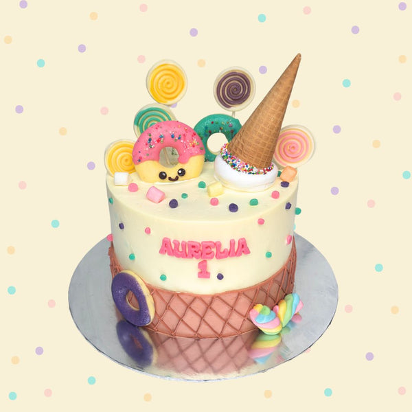 Celebrate the next joyous occasion with the Cutie Candyland cake designed by Take A Bake. All images shown are for illustration; the cake may vary slightly from the website's images.