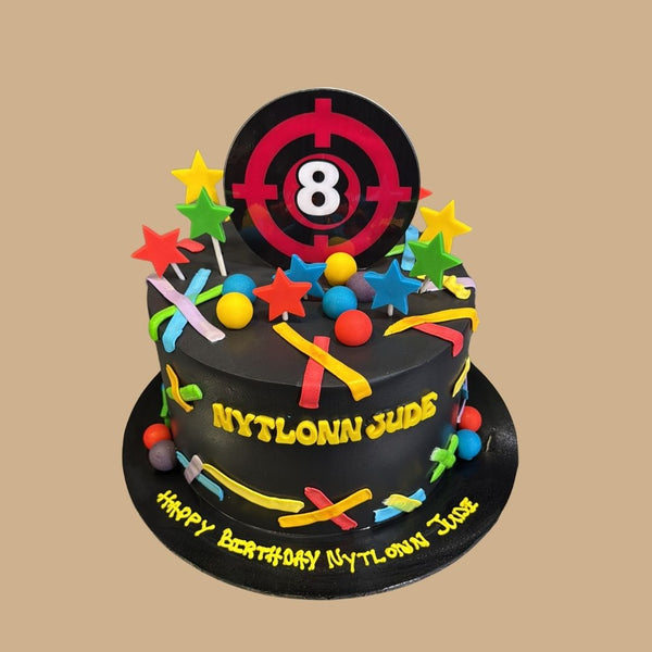 Level up your celebration with the Laser Tag Theme Cake designed by Take A Bake — the ultimate cake for laser tag fans who love action and adventure! All images shown are for illustration the actual cake may vary slightly from the website's images.