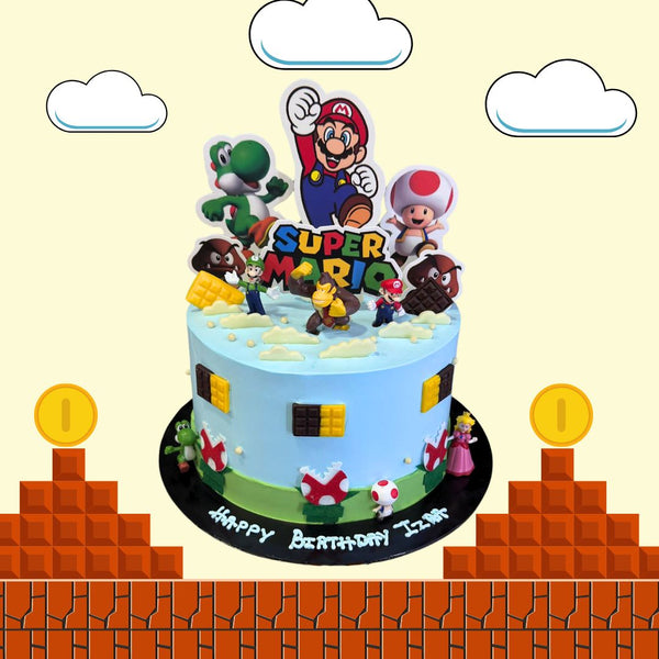 Celebrate your special moment with a Super Mario Adventures cake designed by Take A Bake. An ideal cake for your Super Mario theme party! All images shown are for illustration, the actual cake may vary slightly from the website's images.