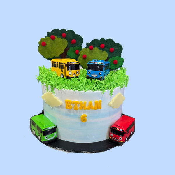 Celebrate your special moment with the Tayo Nature Excursion cake, designed by Take A Bake. An ideal cake for your Tayo Bus Birthday Party! All images shown are for illustration, the actual cake may vary slightly from the website's images.
