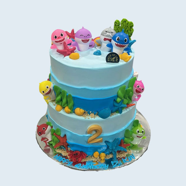 Celebrate your special moment with the Two-Tier Baby Shark Adventure cake designed by Take A Bake. An ideal cake for a Baby Shark-themed birthday celebration! All images shown are for illustration; the cake may vary slightly from the website's images.