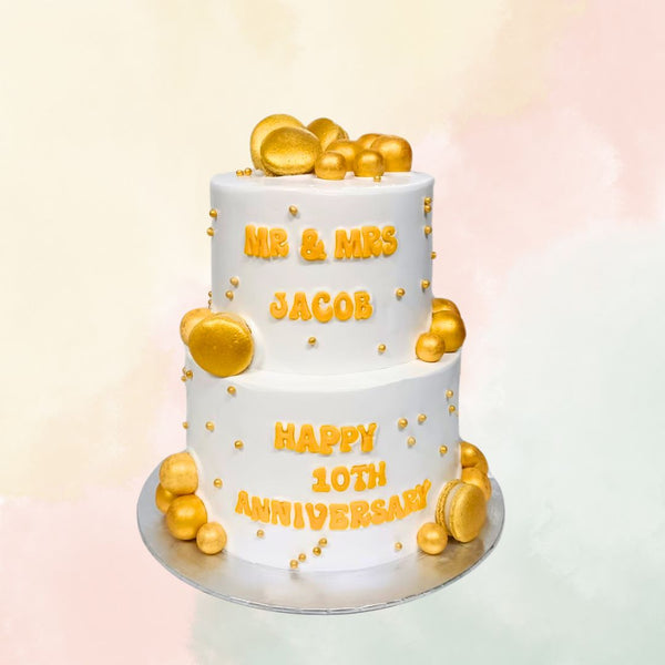 Celebrate your joyous occasion with a Two-Tier Gold Luxe Delight cake designed by Take A Bake. All images shown are for illustration, the actual cake may vary slightly from the website's images.