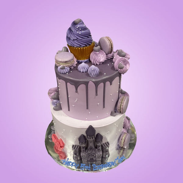 Celebrate your joyous occasion with a Two-Tier Lavender Castle Cake Inspired Theme cake designed by Take A Bake. All images shown are for illustration, the actual cake may vary slightly from the website's images.