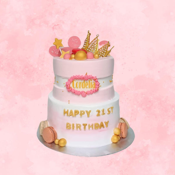 Celebrate your joyous occasion with a Two-Tier Macaron Queen Themed Cake designed by Take A Bake. All images shown are for illustration, the actual cake may vary slightly from the website's images.